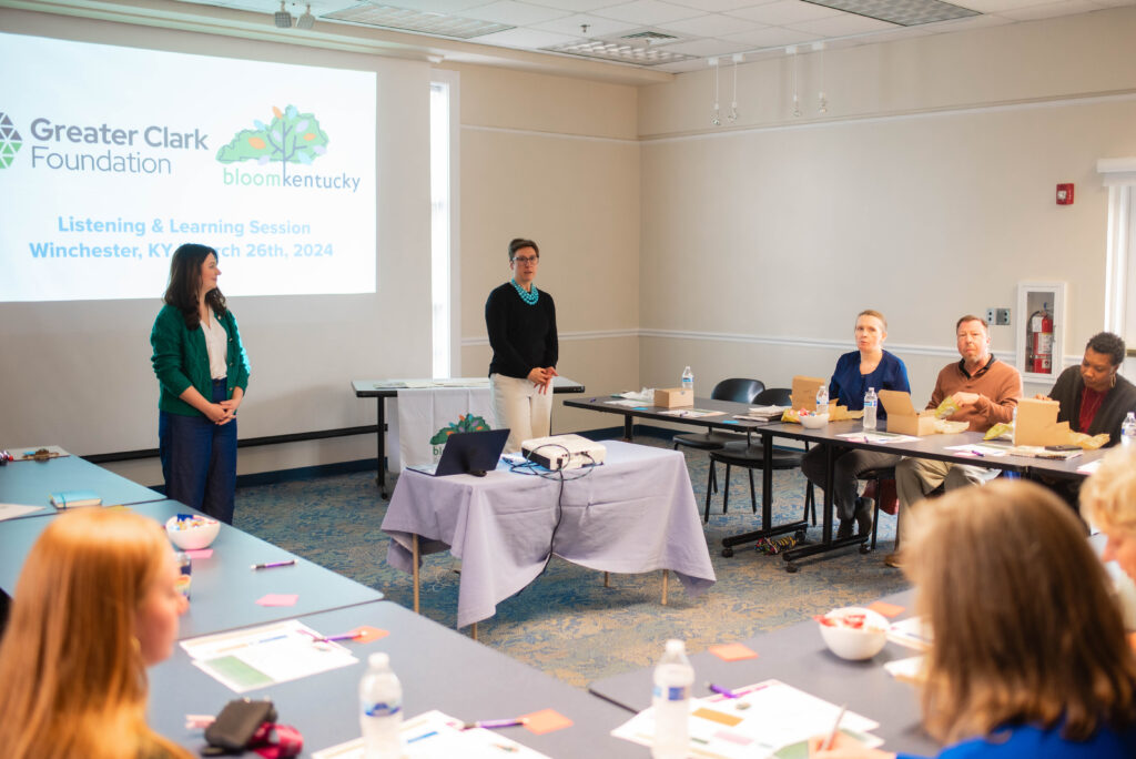 On March 26th, Bloom Kentucky and the Greater Clark Foundation came together in Winchester at the Clark County Public Library for a Listening & Learning Session. During this session, attendees learned more about Adverse Childhood Experiences (ACEs), Positive Childhood Experiences, Clark County regional data, received an update from the Sowing Resilience Tour, and heard more about what is taking place this legislative session in relation to their community’s needs and priorities. Attendees also learned more about the opioid abatement funds and how to become more effective advocates in Frankfort.