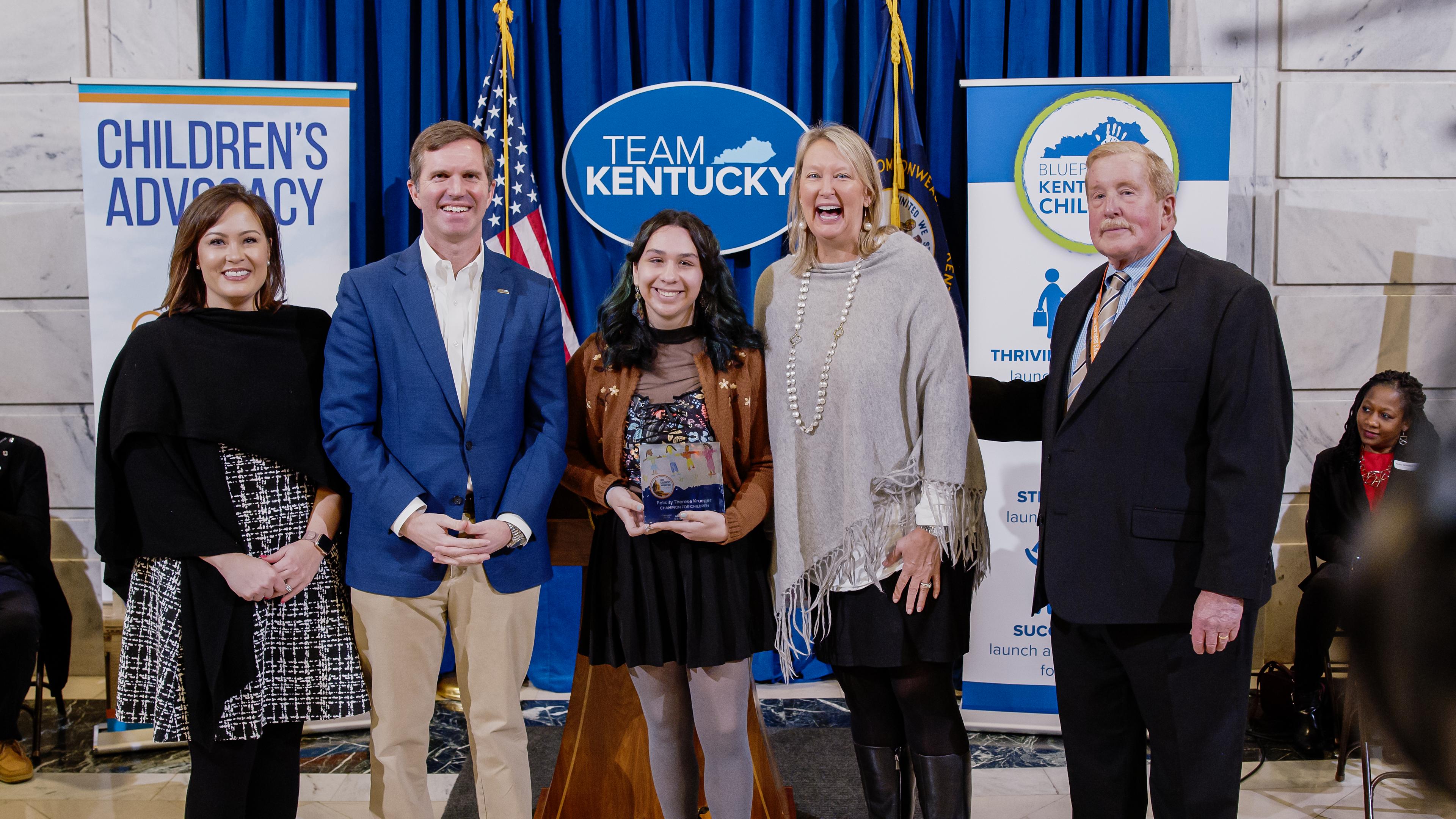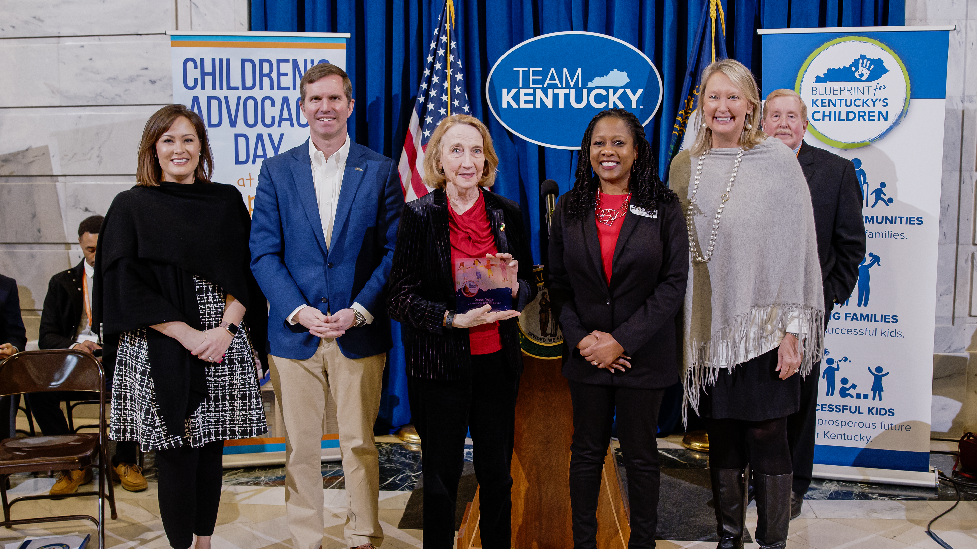 Elected leaders and advocates step up for Kentucky kids in countless ways every day, especially in Frankfort throughout the legislative session. During Children’s Advocacy Week, Kentucky Youth Advocates and partners in the Blueprint for Kentucky’s Children present Champion for Children awards to honor those state leaders, advocates, and young people for their efforts.
