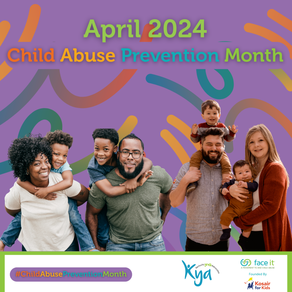 For Child Abuse Prevention Month, Face It provides a social media toolkit for community partners to promote prevention tips for parents and caregivers throughout the month of April. Likewise, Face It provides easy ways YOU can be involved in preventing child abuse, such as attending featured events, volunteering with partner organization, donating to Kosair for Kids, and sharing social media parenting tips with caregivers, amongst others. Check out faceitabuse.org/capm/ for more information!