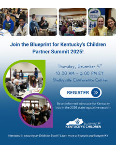 Join Kentucky Youth Advocates at the Blueprint for Kentucky’s Children Partner Summit! We will launch resources for the 2026 Blueprint policy priority agenda, hear insights into the landscape for kids—both at the federal and state levels—and mobilize advocates for the 2026 legislative session. The goals of the summit are to inform partners about state policy and budget priorities and to equip them as key advocates for kids and families in Frankfort.