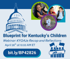 Join Kentucky Youth Advocates on Tuesday, April 28th at 10 AM EST as the policy team provides a recap on the state legislative session, Blueprint for Kentucky’s Children 2026 priority bills, and other bills that will impact kids, including the final two-year state budget.We will also be joined by a panel of partners to reflect on themes, wins, and challenges of the 2026 Kentucky General Assembly. Register here.