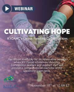 Join Bloom Kentucky for an informative session where KY Opioid Abatement Advisory Commission leaders and support staff will provide a comprehensive overview of the upcoming grant cycle. Learn about the funding priorities, elgibility criteria, key deadlines, and information about the application process on funding opportunities, important dates, and the new application process.