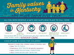 The infographic describes the facts about kinship care in Kentucky. It also displays the inequity in supports for kinship care vs. foster care and offers some suggestions on how we can better leverage the strengths of kinship families to ensure they are thriving.