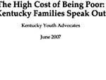 To better understand how the “high cost of being poor” is affecting local families, Kentucky Youth Advocates conducted in-depth interviews and focus groups throughout the Commonwealth. In this report, KYA focused on how families manage the costs of basic goods and services, and what they think is needed to help bring down these costs.