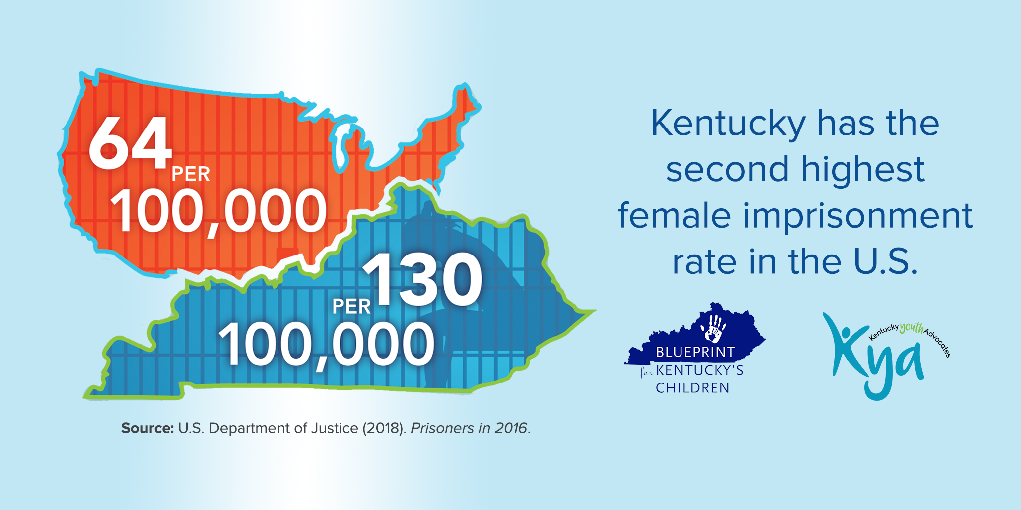 Seventy-one percent of women incarcerated have children. With Kentucky’s trend of increasing female incarceration rates, the commonwealth can expect the number of children impacted by parental incarceration to climb.
