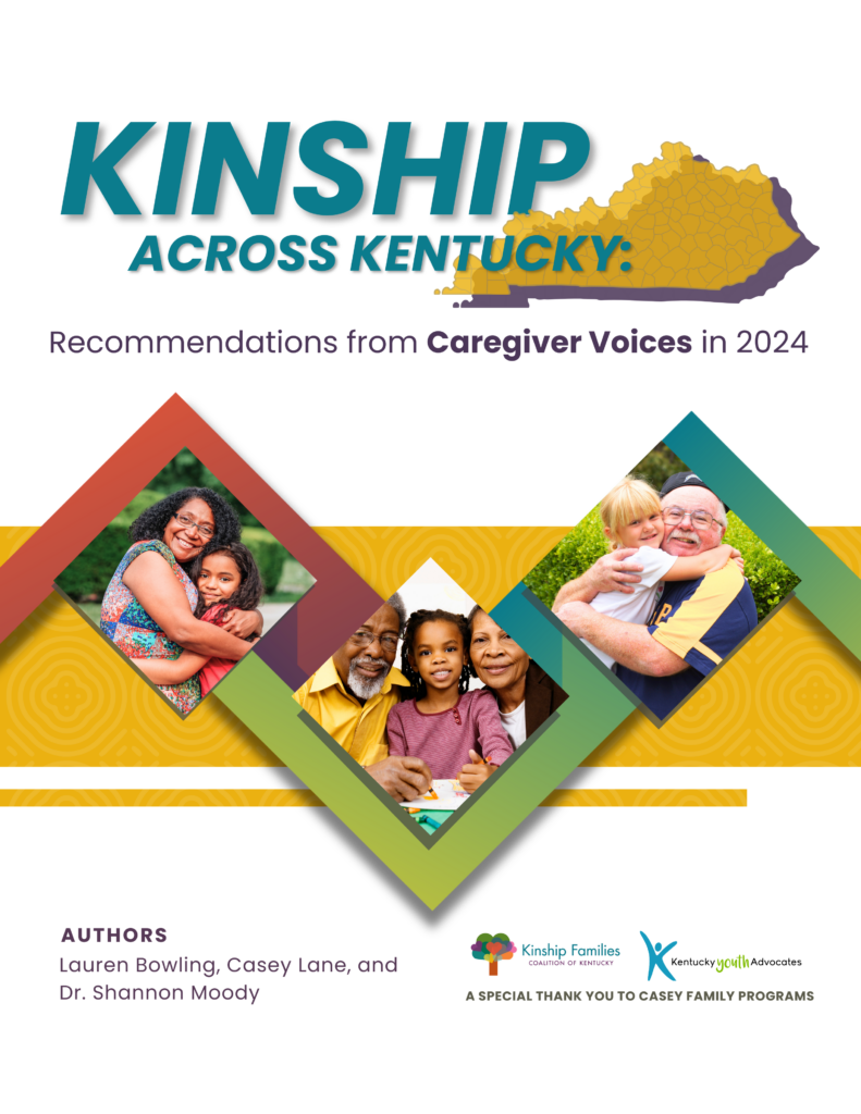 During the summer of 2024, Kentucky Youth Advocates (KYA) and the Kinship Families Coalition of Kentucky (KFCKY) conducted online surveys and in-person listening sessions in all nine Department for Community Based Services (DCBS) service regions to gather feedback from kinship caregivers and service providers, such as health care professionals, school personnel, community leaders, nonprofit agencies, and others. As a result, a new report from KYA and KFCKY, Kinship Across Kentucky: Recommendations from Caregiver Voices 2024, outlines the needs and challenges facing kinship and fictive kin families in the Commonwealth and offers systems and practice level recommendations for improvements that promote the best outcomes for children.