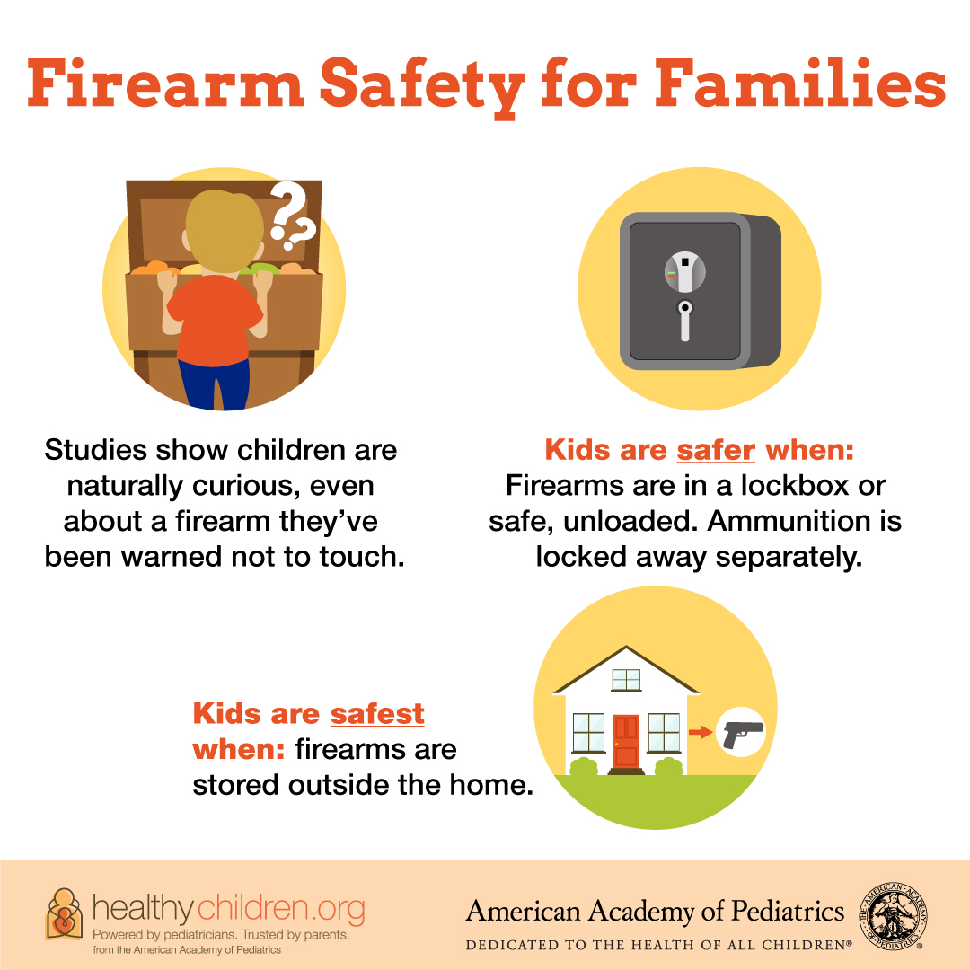 • Firearm Safety Campaign Toolkit – The American Academy of Pediatrics offers a series of social media graphics and other resources to promote firearm safety for families, including safe firearm storage and talking about firearms before a playdate.