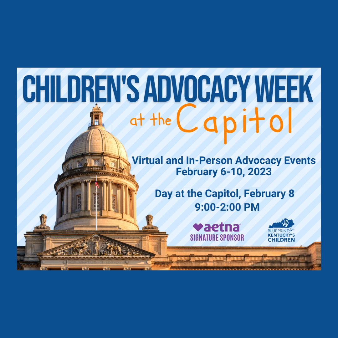 New year, new information about Children’s Advocacy Week 2023! With the General Assembly reconvening and the robust Blueprint for Kentucky’s Children policy agenda in need of advocacy, we wanted to share the schedule and a few reminders to help you lift your voice on behalf of kids during Children’s Advocacy Week coming up February 6-10.